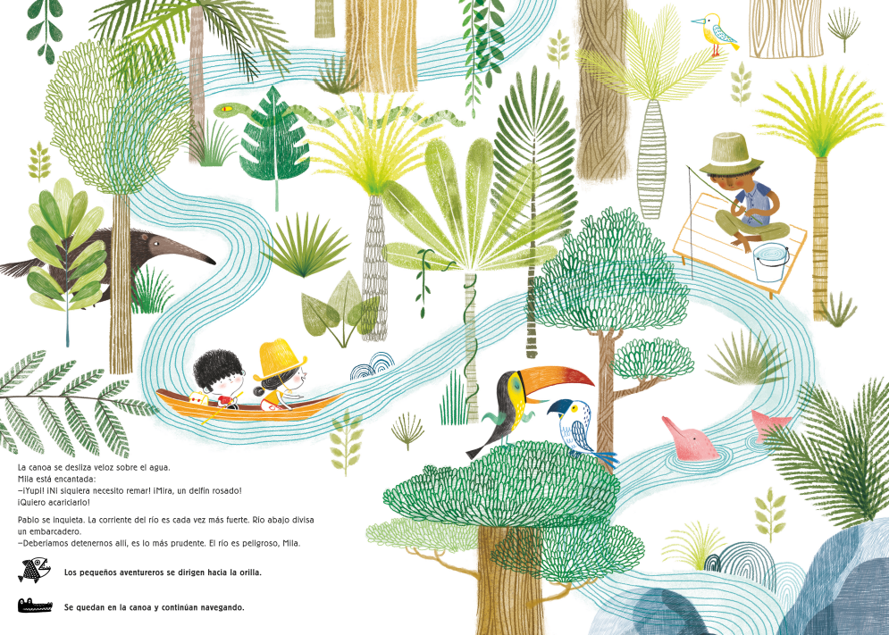 En septiembre verá la luz el cuento: ¿Qué será ese extraño grito? ilustrado por Amandine Piu y escrito por Sylvie Misslin. Es una aventura divertidísima en la que dos valientes hermanos, Mila y Pablo, recorren la selva para descubrir el origen de un misterioso grito que han escuchado.